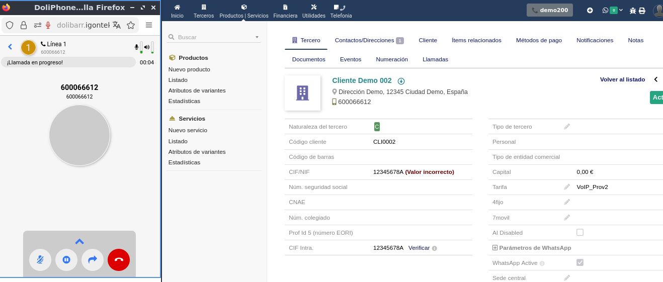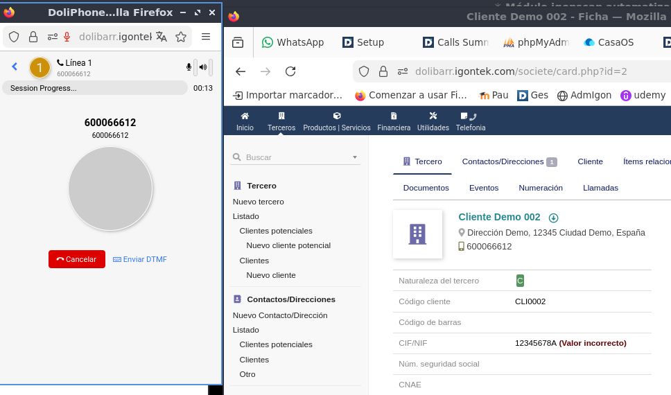 5. Al responder, pinchando en el tercero identificado se accede a su ficha en Dolibarr.
