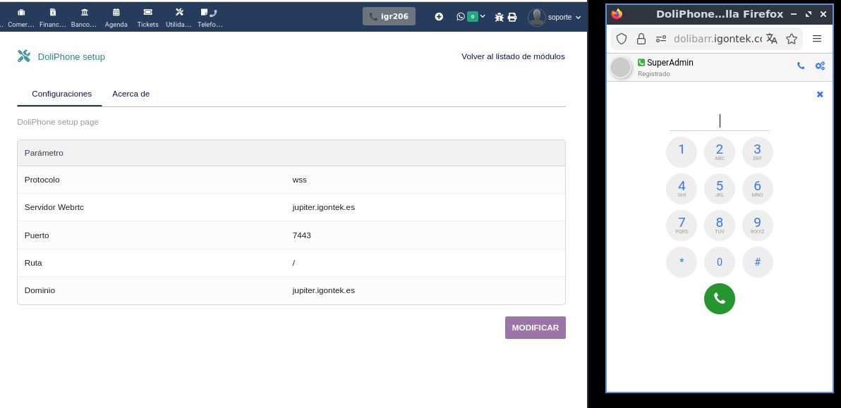 DoliPhone integra un teléfono SIP basado en WebRTC dentro de Dolibarr, permitiendo realizar y recibir llamadas sin salir de la aplicación.