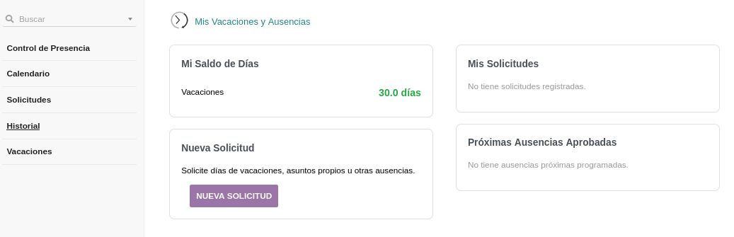 - El m贸dulo de vacaciones ofrece calendario de ausencias, saldo de d铆as, solicitudes y pr贸ximas ausencias aprobadas
