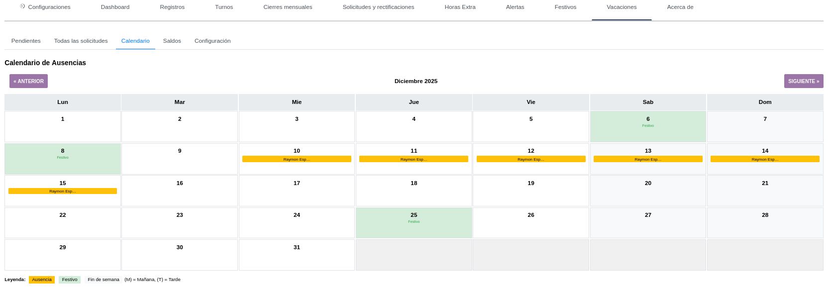 - Gesti贸n completa de festivos nacionales y locales con importaci贸n autom谩tica de Espa帽a
