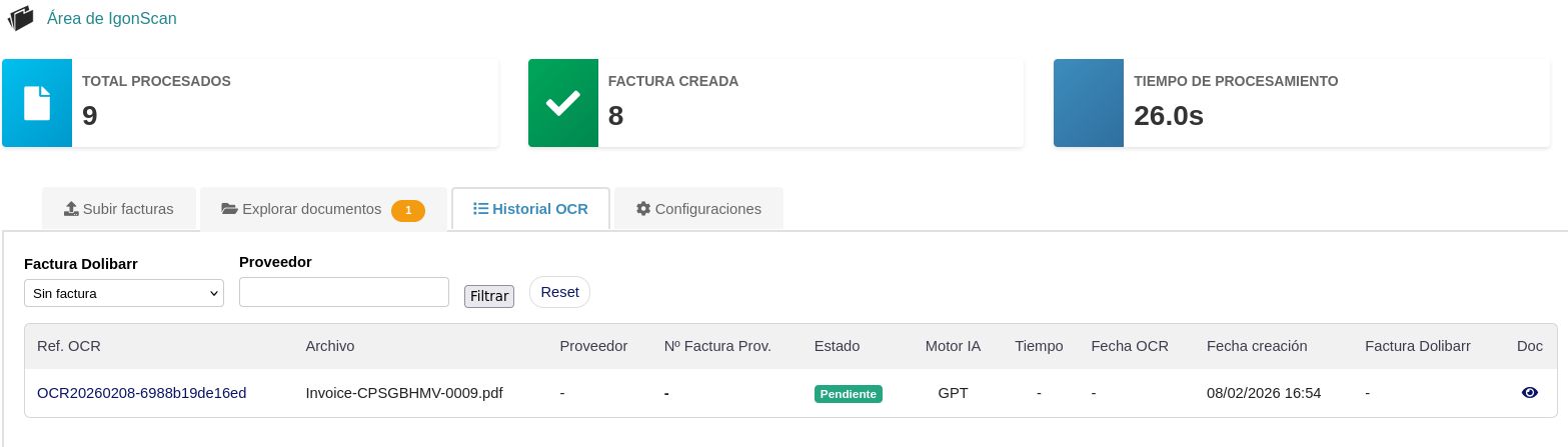 IgonScan automatiza por completo la introducción de facturas de proveedor en Dolibarr.