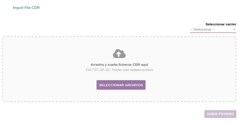 2. Importar ficheros CDR (CSV/TXT/ZIP/GZ) por carrier.