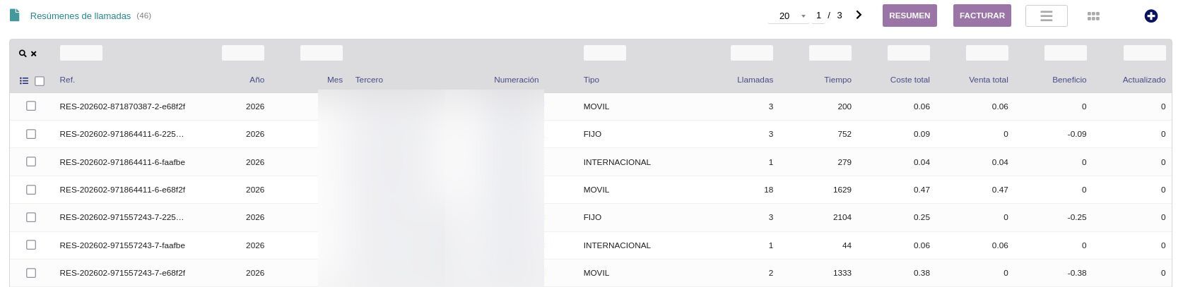 • Desde el resumen de llamadas salientes lanza la facturación agrupada por tercero con un clic en FACTURAR